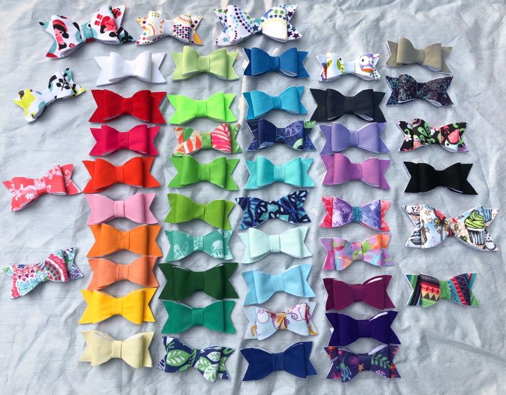 She’s since branched out into making custom hats and clothing, too, and she offers different colors of nylon bands so that no matter the color of baby’s skin, they can look their best in their Up-Cycled Lalabye bows!